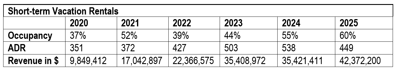 A.T.A. ta continua monitorea e sector di STVR via plataforma Lighthouse. Pa december 2025, nivel di ocupacion promedio a subi pa 60%, compara cu 55% den december 2024. E ADR (Average Daily Rate) pa december 2025 ta USD $449, mientras cu ingreso total pa luna di december a alcanza USD $42.3 miyon, un aumento notabel compara cu december 2024.