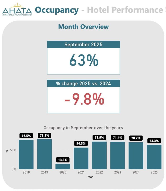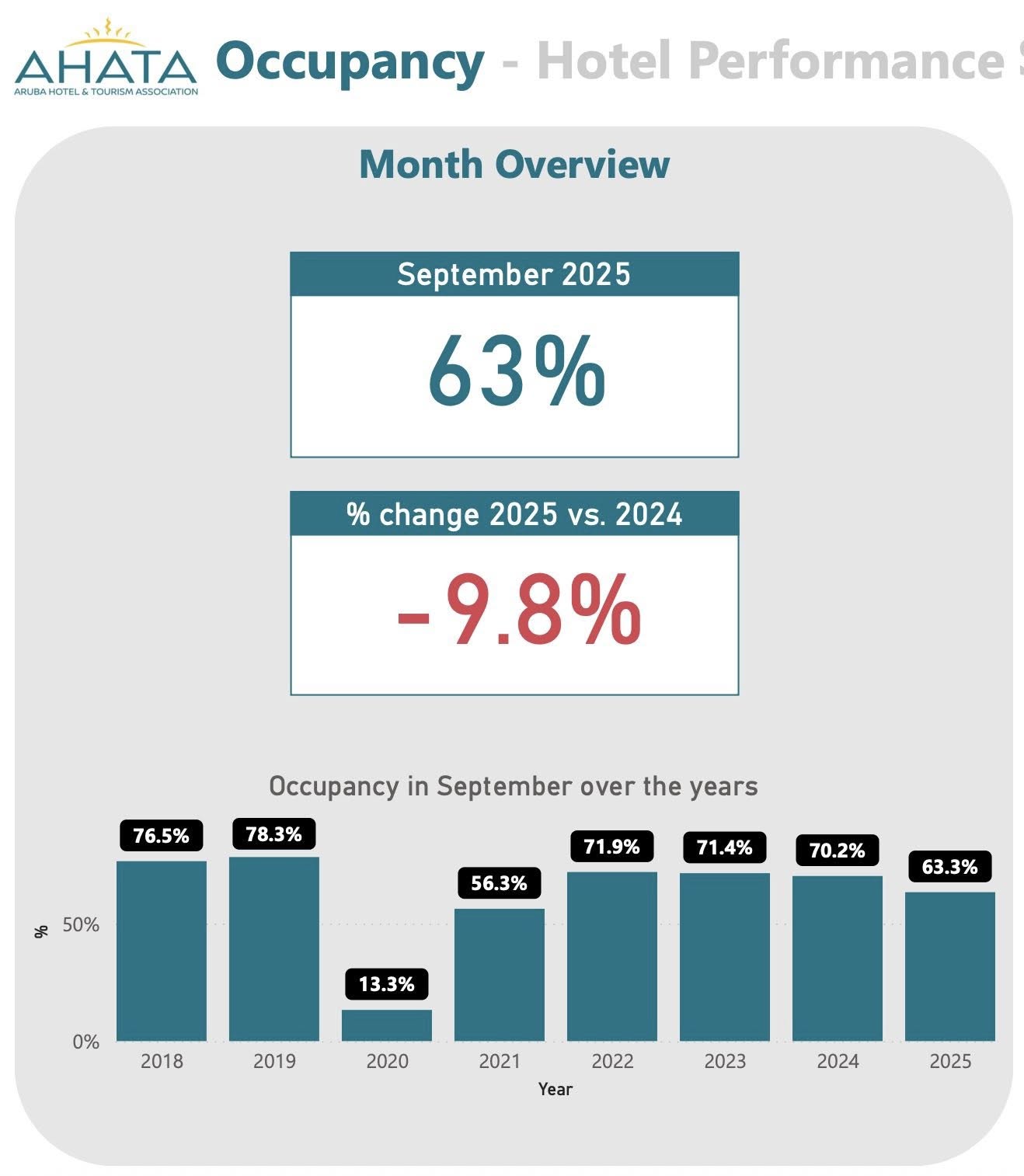 Normalmente, na september e grado di ocupacion ta baha, y despues e tendencia ta cu e ta subi pa temporada di fin di aña. AHATA ta reconoce esaki, bisando riba rednan social: “Aunke cu September historicamente tin un dip y a logra mantene RevPAR, e cifra aki ta preocupante.”