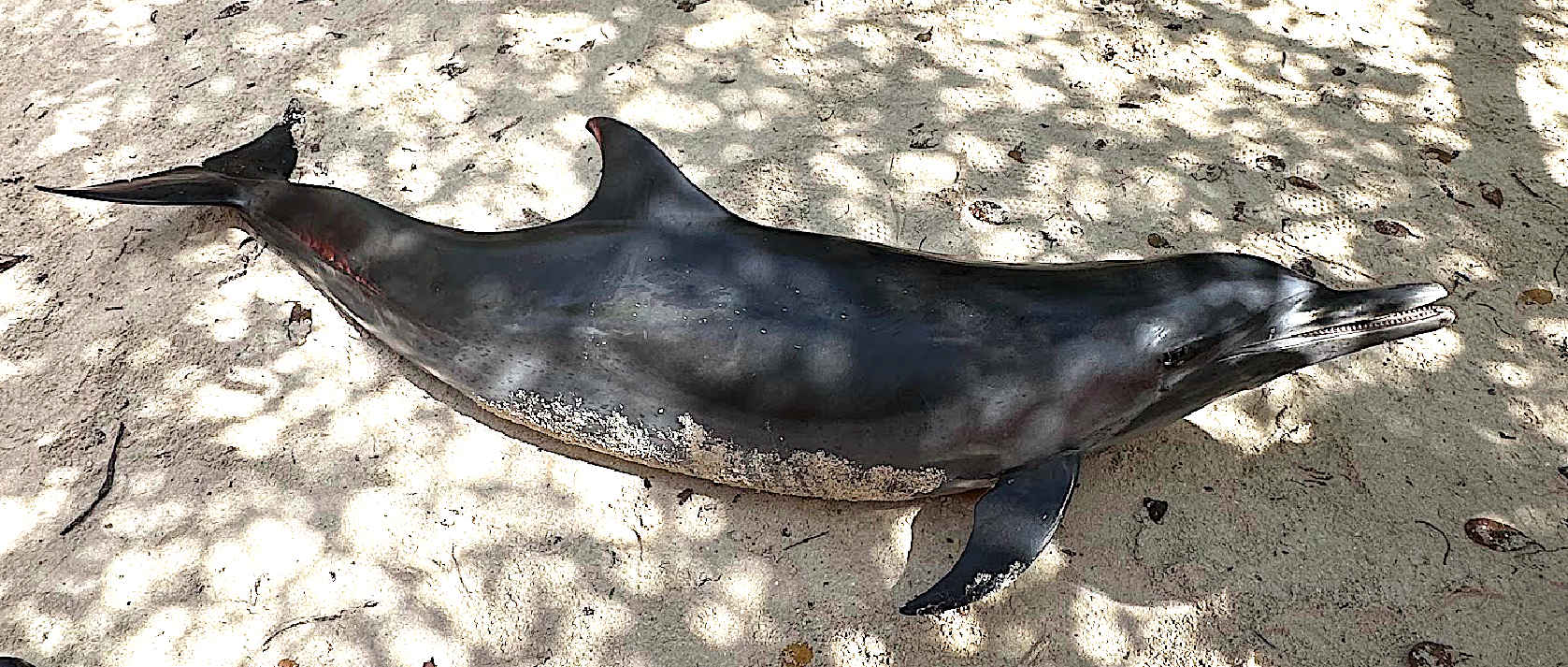 Segun relato di testigonan, a observa tres dolfijn inicialmente, di cual uno tabata den e areanan poco hundo y tabata mustra señal di dificultad. Algun hende tabata landa cu e dolfijn y saca potret; el a ser hiba tera ora el a muri, y na e momento ey a tuma contacto cu AMMF.