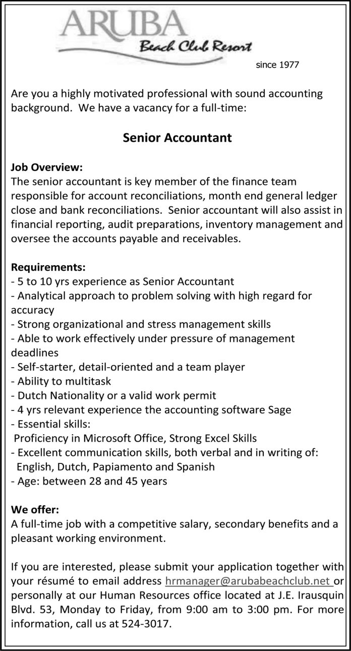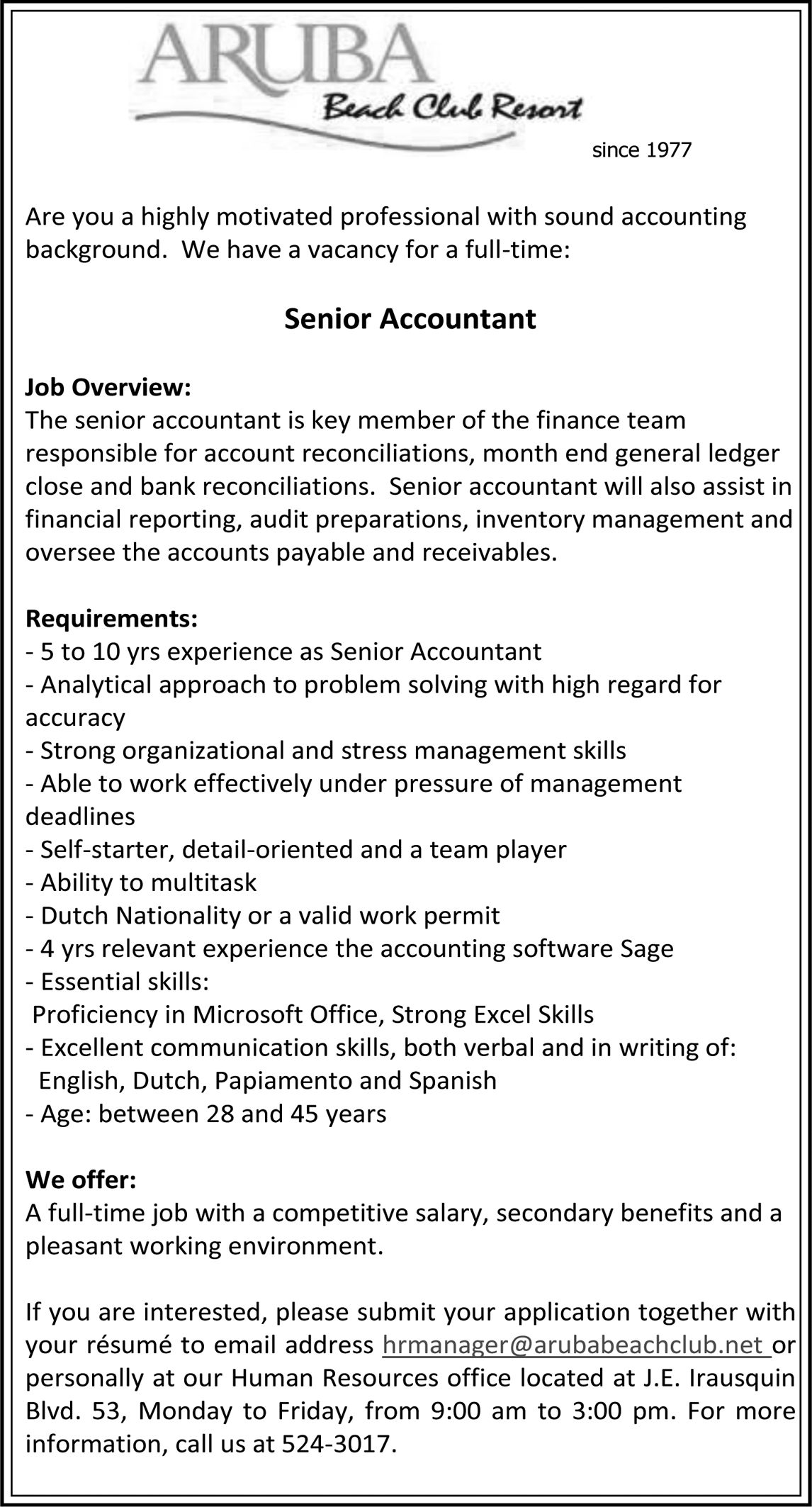Home VACATURA Aruba Beach Club Resort – Senior Accountant VACATURA Aruba Beach Club Resort – Senior Accountant October 20, 2025 10 Facebook Twitter Google+ Pinterest WhatsApp Ultimo Noticianan Boogaard Assurantien N.V. – Customer Service Center... October 20, 2025 Aruba Beach Club Resort – Senior Accountant October 20, 2025 SNBA ta comparti vision pa San Nicolas... October 20, 2025