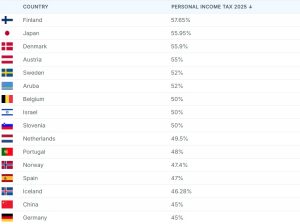 Aruba ta clasifica entre e paisnan cu e tarifanan di impuesto riba entrada personal mas halto den 2025, segun multiple comparacionnan internacional di sistemanan di impuesto mundial. Mientras cu e posicion exacto di e isla ta varia dependiendo di e metodologia usa, varios set di dato creibel y analisis financiero ta pone Aruba consistentemente den e nivel mas halto mundialmente, y den algun caso den e top 10 paisnan cu e tarifanan di impuesto mas halto.