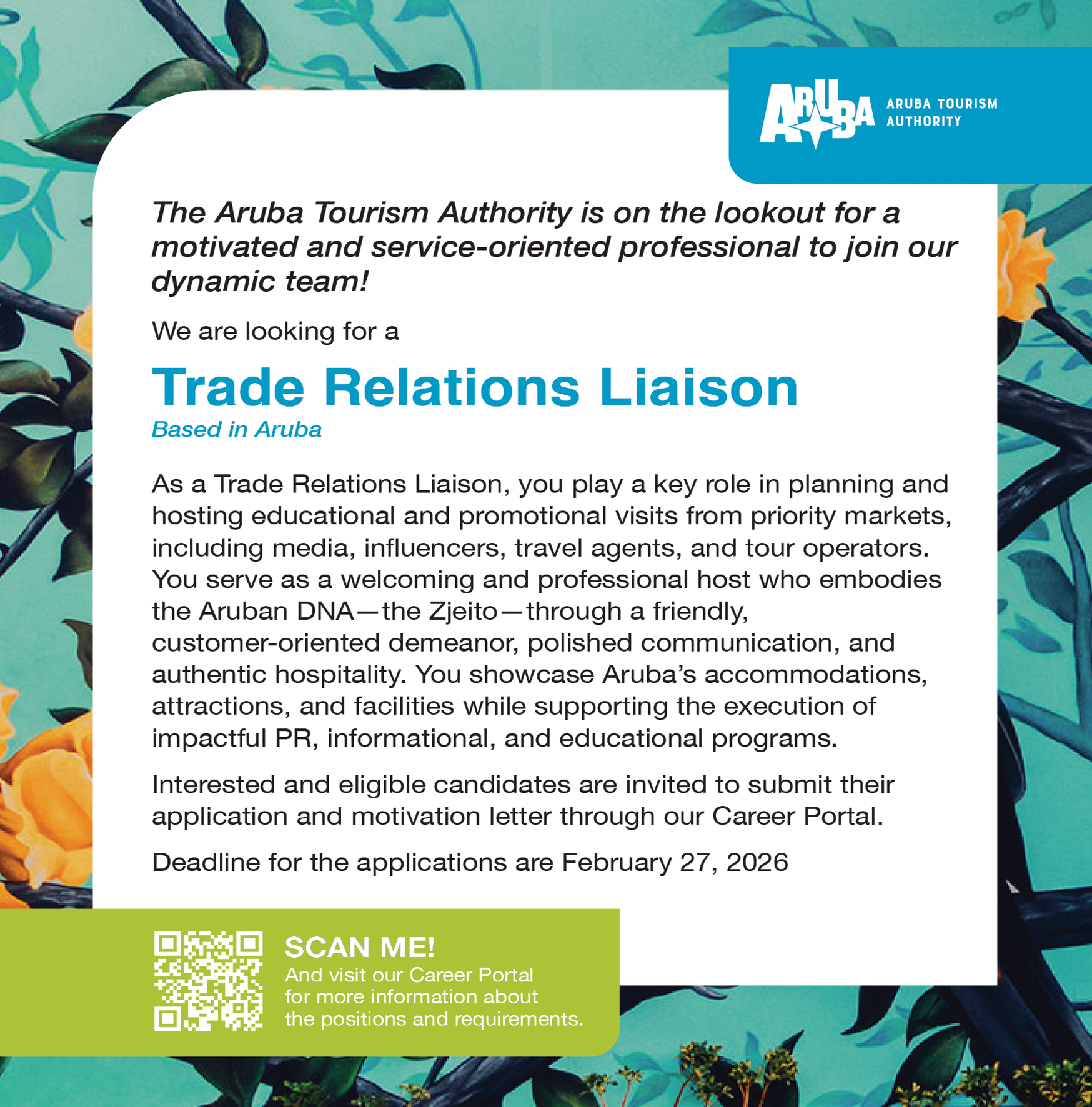 Home VACATURA Aruba Tourism Authority – Trade Relations Liaison VACATURA Aruba Tourism Authority – Trade Relations Liaison February 20, 2026 3 Facebook Twitter Google+ Pinterest WhatsApp Ultimo Noticianan Aruba Tourism Authority – Trade Relations Liaison February 20, 2026 Casa Tua – Full Time Handyman February 20, 2026 Cft ta mustra preocupacion serio a pesar... February 19, 2026