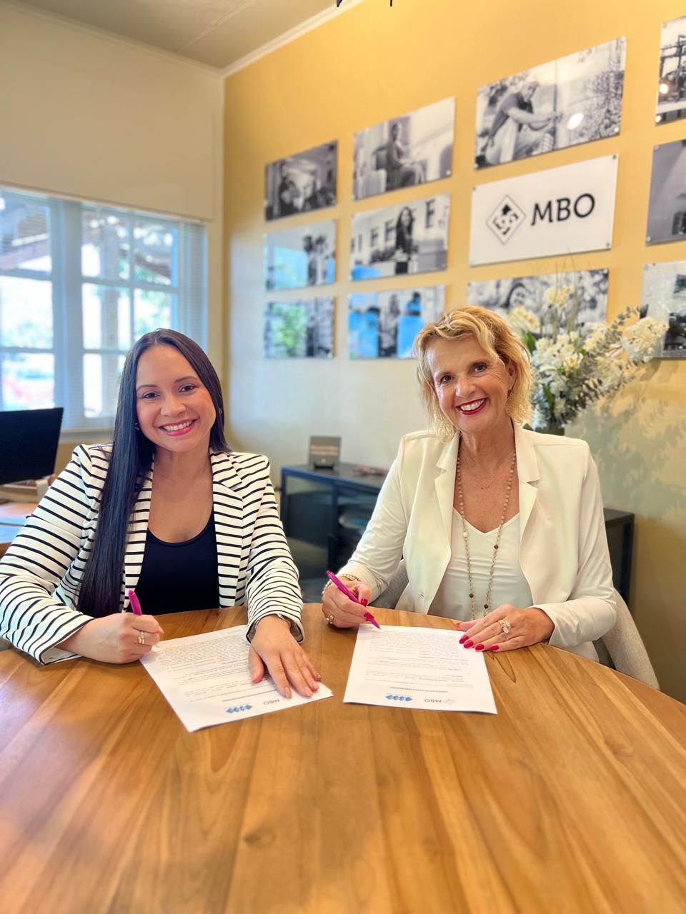 A firma e acuerdo den presencia di Minister di Relacionnan den Reino, Educacion, Hubentud, Innovacion y Deporte, mr. Gerlien Croes (Futuro), cu ta representa Gobierno di Aruba y Colegio EPI, y mevrouw L. Wolff, unitdirecteur MBO, pa SGB MBO Boneiro.