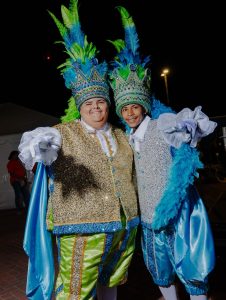 12nd Runner Up a bay pa Alina Wever di TOB Carnival Group cu Cielo Josenne Lara Benitez di Gucci Dancers Aruba ricibiendo e premio pa 1st Runner Up.