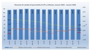 E promedio anual (ultimo 24 luna) di e tasa di inflacion pa e periodonan di Januari 2024 te cu Januari 2025 y Januari 2025 te cu Januari 2026 ta 0.1%, un caida di 1.5 ppt compara cu e 1.6%