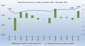 Recientemente, Oficina Central di Estadistica (CBS) a publica e Indice di Prijs di Consumo pa luna di december 2025. Den esaki, a nota cu e nivel minimo di entrada necesario pa biba na Aruba, e ‘bestaansminimum’, a registra aumento, tanto pa famia como pa un persona riba su mes.