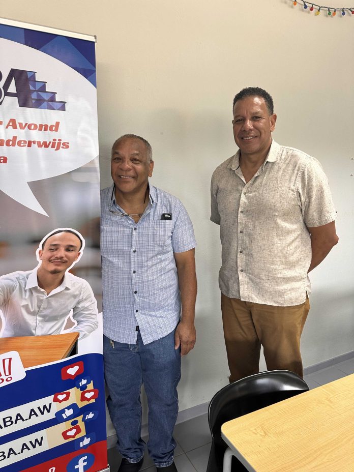 Bon Dia Aruba a sinta cu Carlos Martinus y Reginald ‘Reggie’ Havertong, Director y Director Adhunto di OABA, kendenan hunto cu Sharuska Dabian y Claudia Whitfield ta dirigi e institucion. “Mi muchanan,” ta con Martinus ta yama e studiantenan, cu ta inclui un persona di 65 aña a gradua, cu a pesar di su trabao, ta comprometi di sigui pa e di tres nivel di su estudio. “El a comprometi su mes pa dos aña largo pa tres anochi tur siman y sin faya. Y si ta faya mes, ta pasobra na trabao tin un emergencia. E ta asina ‘great’ pa mira un hende di edad tin asina motivacion.” Ta trata aki di un persona cu ya caba tabatin conocemento di electro, pero kier a hisa su capacidad. E persona aki, hunto cu su colega studiantenan a participa den e examen cu tin un duracion di 16 ora, manera ta e caso cu programanan educativo profesional na Hulanda. Ta trata examennan cu ta dirigi unicamente riba practica. “Nos kier wak si un hende ta capaz. Mi tabatin alumno cu a score un 10, pero den practica no por a haci mucho, pa falta di e capacidad. E sistema nobo di enseñansa ta permiti esaki.” (EPI tambe a cuminza cu e sistema di examen practico).
