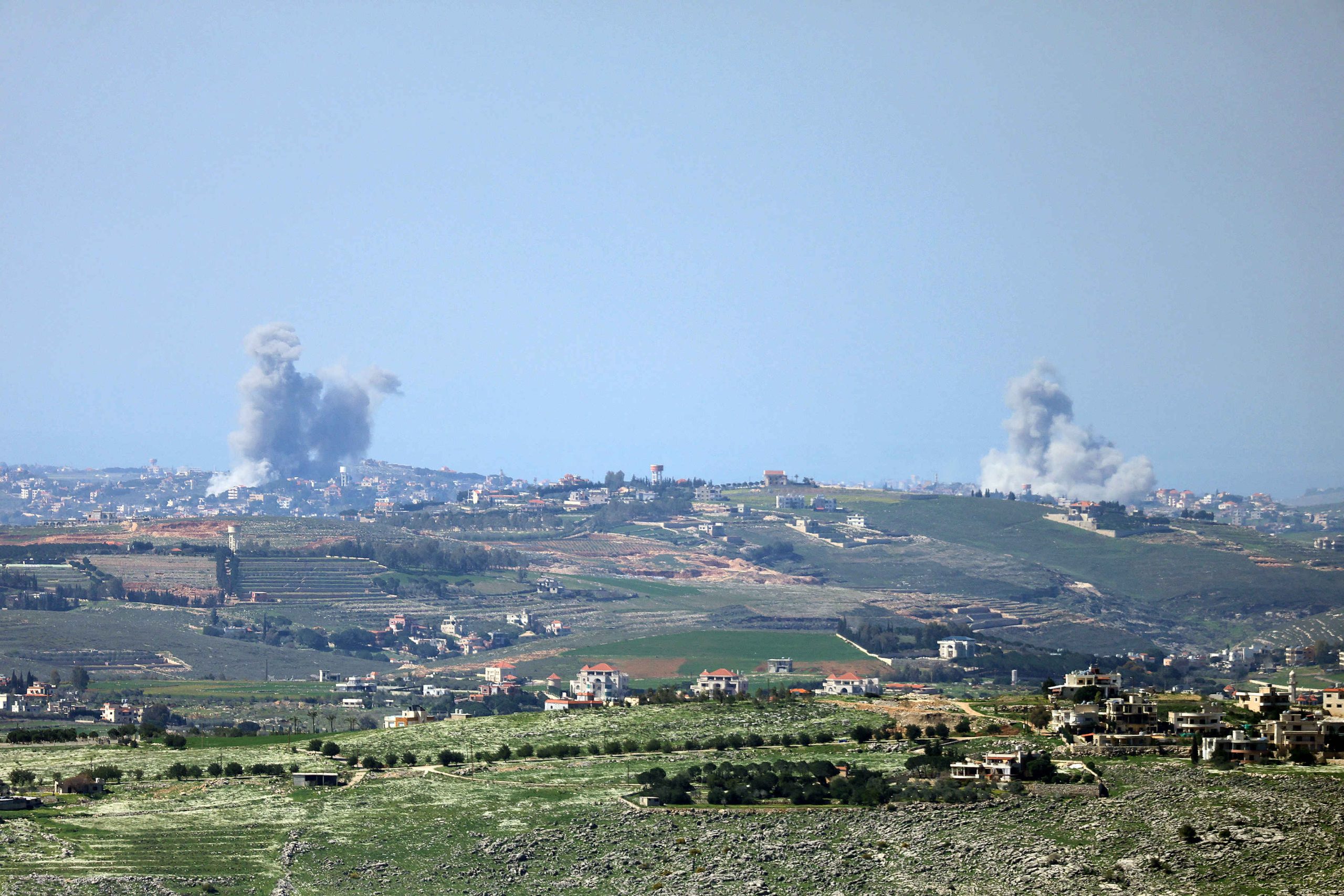 Smoke rises from Israeli bombardment on the southern Lebanese village of Choukine on March 3, 2026. Israel on March 3 ordered the military to take control of more positions in Lebanon, where the army pulled back some of its forces after Hezbollah attacked Israeli bases in support of its backer, Iran. (Photo by Rabih DAHER / AFP)