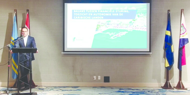 Aruba tabata anfitrion di e Interparlamentaire Koninkrijksoverleg (IPKO) 2026 cu a tuma luga recientemente. Durante e reunionnan aki e parlamentario y representantenan di cada pais a ricibi presentacion di diferente stakeholder. Durante su presentacion director di Departamento di Finanzas di Aruba, Derrick Werleman, a trece atencion renoba na e balansa compleho entre supervision financiero, gobernacion y autonomia dentro di e partinan Caribense di Reino Hulandes. E discurso a delinea tanto e cuadro legal como e implicacionnan practico di supervision financiero na Aruba, Corsou, y Sint Maarten, mientras tambe a haci comparacion cu Hulanda.