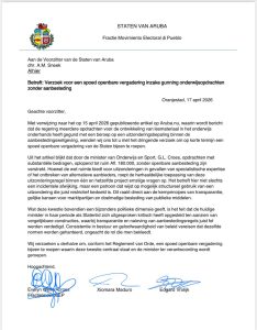 Pa e motibo ey, Fraccion di MEP a pidi cu urgencia pa yama un reunion publico di Parlamento, unda e minister lo mester duna splicacion completo y documenta.