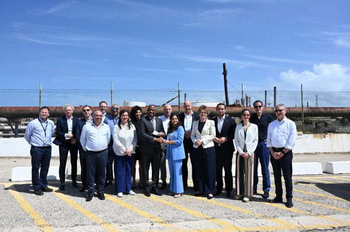 Diaranson merdia, un delegacion di Eerste y Tweede Kamer Hulandes cu ta na Aruba pa e Interparlamentair Koninkrijksoverleg (IPKO), riba invitacion di Minister di Husticia y Energia, mr. drs. Arthur Dowers, acompaña pa Director di RDA Robert Henriquez y Director Financiero di RDA Frederick Nuboer, a haci un recorido extenso riba e tereno di refineria.