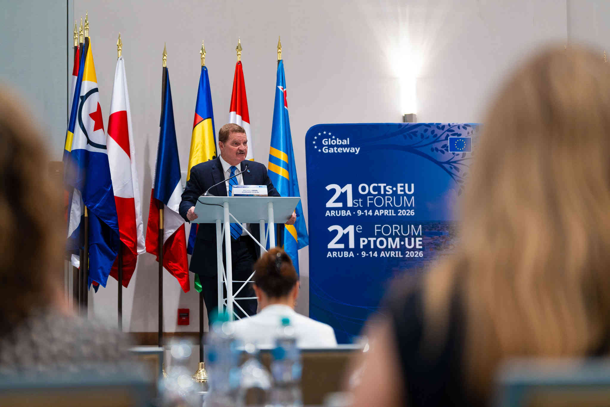 E aña aki, Aruba a organisa e di 21 edicion di e Foro di e Paisnan y Teritorionan Ultramar – Union Europeo (OCTs-EU Forum) cual a tuma luga di 9 pa 14 di april 2026. Un di e puntonan cu a resalta durante e foro ta un cambio den e model di fondo dirigi pa ayudo pa un cooperacion stimula pa inversion, mustrando con Union Europeo ta planea pa sostene su partnernan teritorial di awor pa dilanti. Banda di esaki, a anuncia un propuesta pa redobla fondo pa region Caribe. Pa Aruba, cual e aña aki a posiciona su mes como “brug entre Europa y Caribe”, e strategia nobo di EU por tin beneficio grandi—specialmente mientras Aruba ta enfoca riba transformacion di refineria.