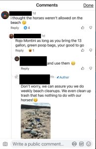Segun e ta conta, e operador mas prominente a cuminsa haci publicacion riba rednan social pa contraresta gobierno su campaña di informacion. Algun siman atras nan a promove nan tour pa medio di publica den e grupo di facebook All Things Aruba, cu varios potret di nan cabay riba lama, y ora nan a ser cuestiona tocante e permiso pa core cu cabay riba lama, nan a responde cu “no worry, nos por sigura cu nos ta haci limpiesa semanal riba lama.” E ambientalista a señala cu aunke berdaderamente nan ta haci un limpiesa semanal, esaki ta laga 6 dia pa siman cu excremento (pupu) di cabay riba lama, cual por afecta e balans delica di e ecosistema na costa, sinembargo mas importante cu esaki, ta e hecho cu presencia fisico di cabay na lama ta impacta e santo cu ta un habitat sensitivo.