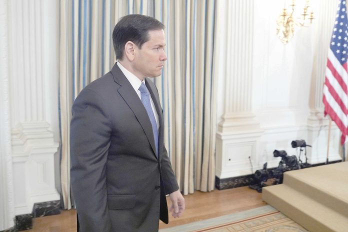 Secretary of State Marco Rubio arrives before President Donald Trump holds a news conference with Israeli Prime Minister Benjamin Netanyahu in the State Dining Room of the White House, Monday, Sept. 29, 2025, in Washington. (AP Photo/Evan Vucci)