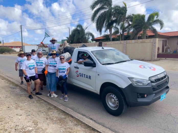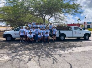Hunto cu un grupo di empleado, SETAR a dedica un mainta pa limpia e area di Bucutiweg, aportando na un costa mas limpi y na un medio ambiente mas sostenibel pa nos isla.