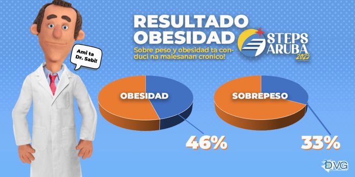 Riba topico di Sobre Peso y Obesidad, investigacion Nacional STEPS 2023 a conclui cu 33% di Aruba su populacion di adulto ta sufri di sobre peso y 46% ta sufri di obesidad. Sobre peso y obesidad ta conduci na malesanan cronico manera Diabetes y Presion Halto.