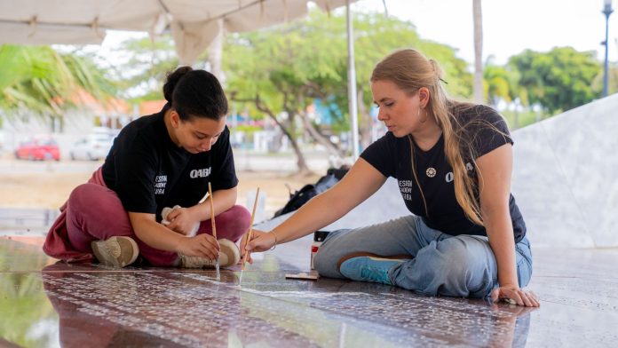 E proyecto a tuma lugar den colaboracion cu Design Academy of Aruba, lidera pa Loucette Reppenhagen, caminda studiantenan ta participa activamente den limpiesa y restauracion di e monumento, incluyendo e limpiesa y verf di cada letra y number di e grabacion historico.