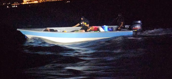 E boto patruyero a intercepta e boto sospechoso y hiba e boto na e pier di Wardacosta. Una bes cu a yega na e pier di Wardacosta e 6 sospechosonan y e paketenan cu substancia ilegal a keda entrega na Cuerpo Policial di Aruba.